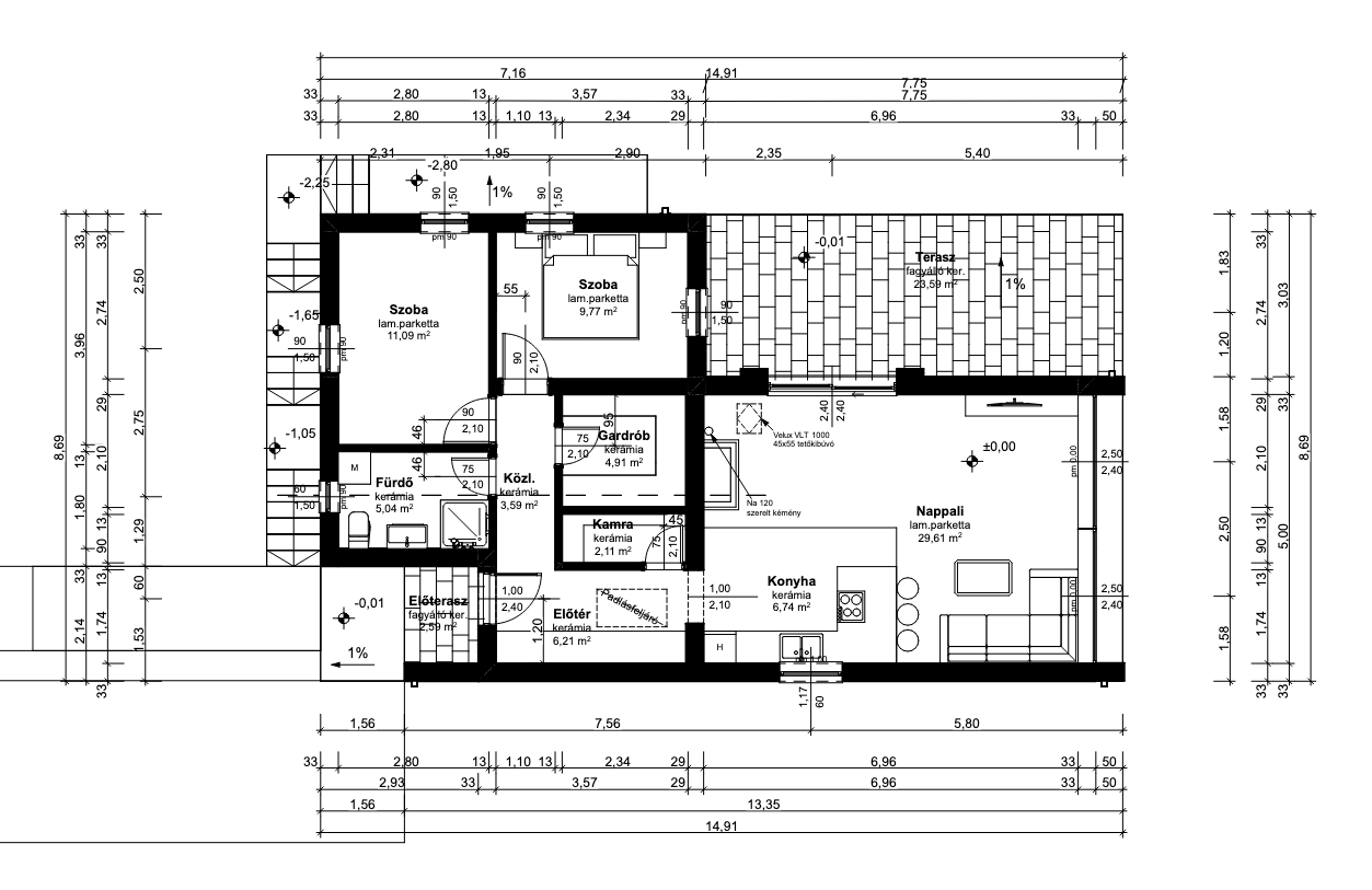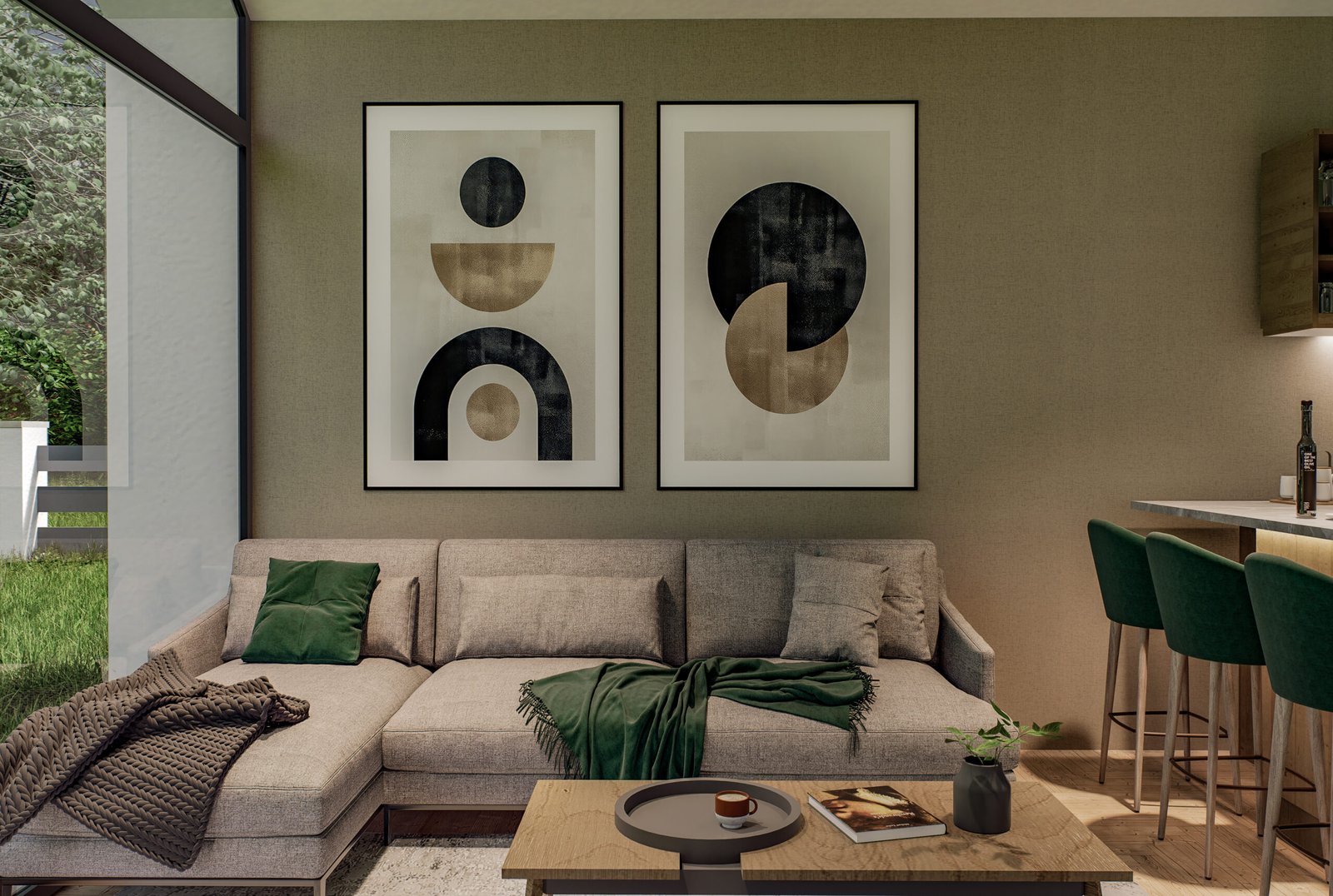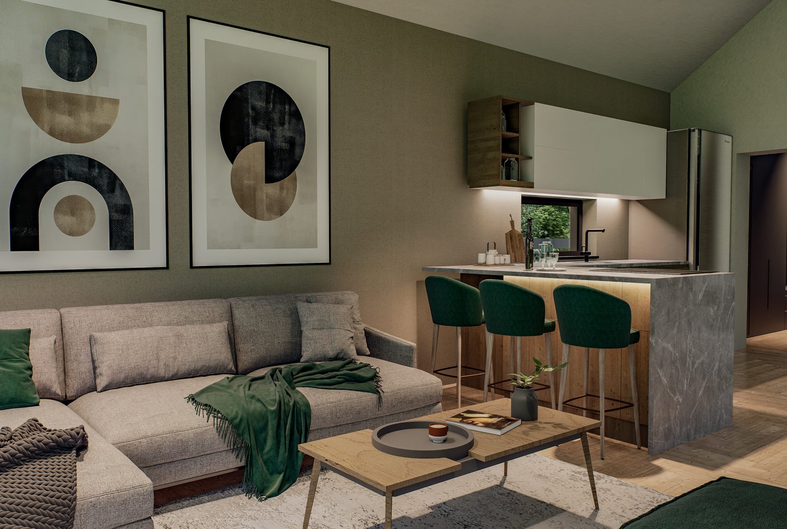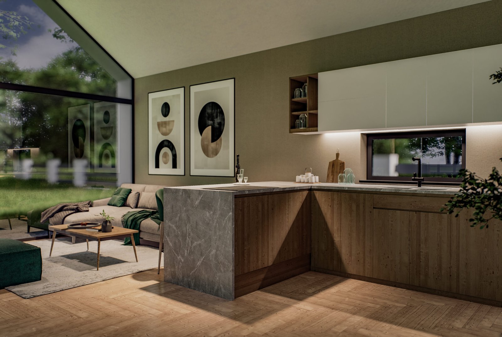 A Bánk egy kompakt méretű, modern otthon, amelyet egyértelműen a tágas közösségi terek köré terveztek. A ház szíve a lenyűgöző, közel 30 m²-es nappali, amely szinte egybeolvad a hozzá kapcsolódó, szintén hatalmas, 29,59 m²-es terasszal. Ez a kialakítás tavasztól őszig gyakorlatilag megduplázza a rendelkezésre álló életteret. Bánk szereti a hazáját, és meg is mutatja minden szépségét a benne élőknek. Olyan helyre ajánljuk, ahol van miben gyönyörködni, legyen az egy örökpanoráma vagy egy csendes tisztás az erdőben. A nyitott, 6,74 m²-es konyhával kiegészülve ez a világos, levegős zóna tökéletes helyszínt biztosít családi ebédekhez, baráti összejövetelekhez vagy egyszerűen csak a mindennapi feltöltődéshez.