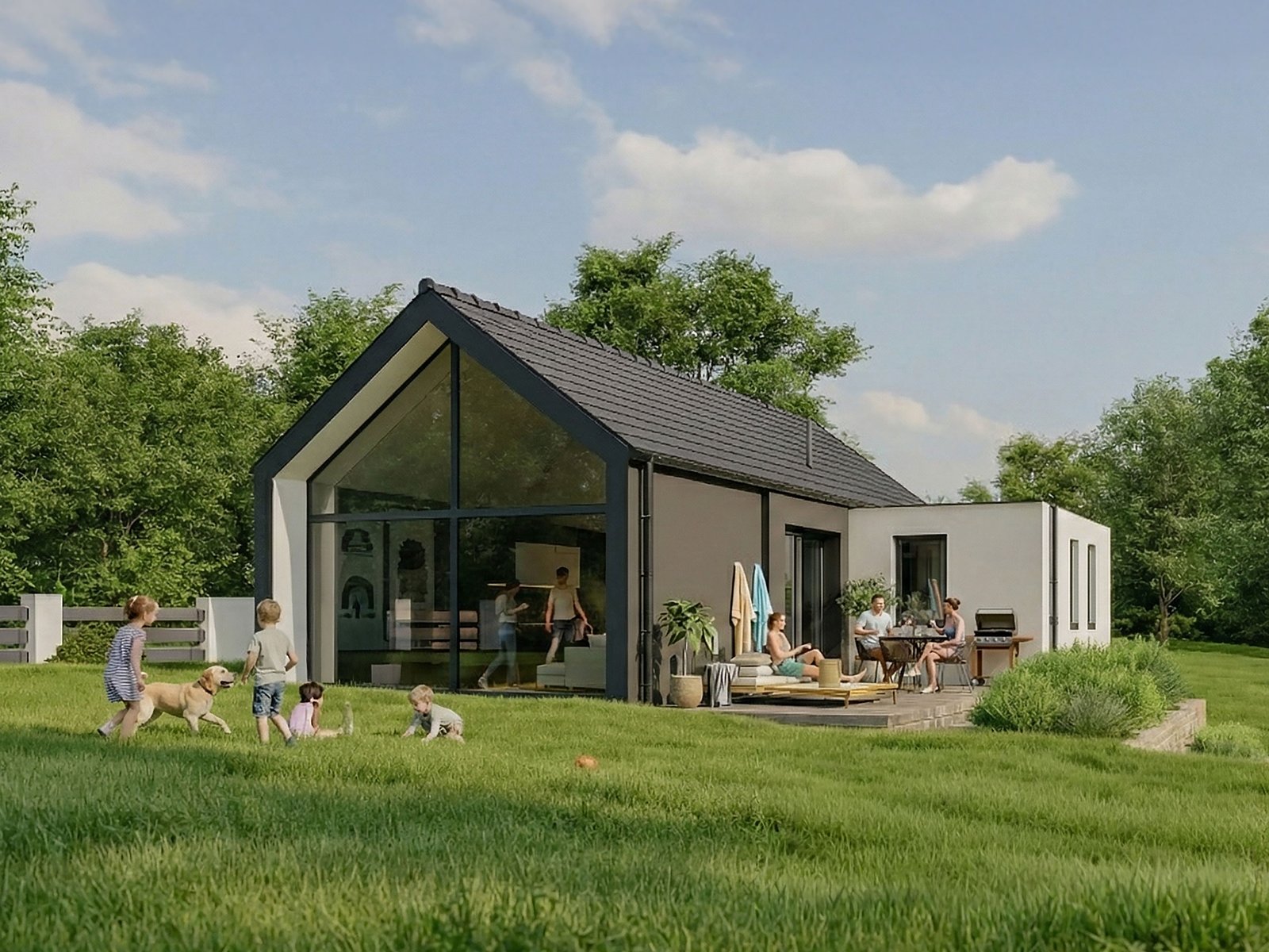 Az otthon alapját a korszerű SIP (Structural Insulated Panel) technológia adja. Ez egy háromrétegű építőpanelt jelent, ahol két nagy teherbírású OSB-lap egy magas hatásfokú hőszigetelő magot zár közre. A lakók számára ez két azonnali előnnyel jár: egyrészt a szerkezet kiemelkedő hőszigetelést biztosít (akár a passzívház-szintet is elérheti), ami rendkívül alacsony rezsiköltségeket eredményez. Másrészt, mivel a panelek milliméter pontosan, üzemi körülmények között készülnek , a helyszíni építkezés hihetetlenül gyors – egy kulcsrakész ház akár 120–160 nap alatt elkészülhet , időjárástól függetlenül és minimális hulladéktermeléssel.