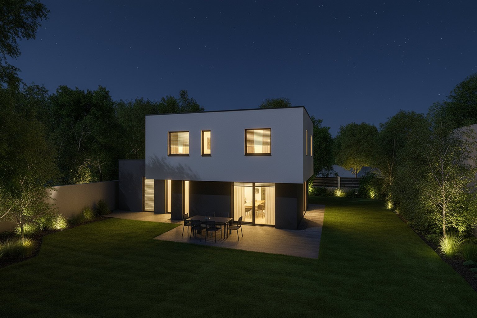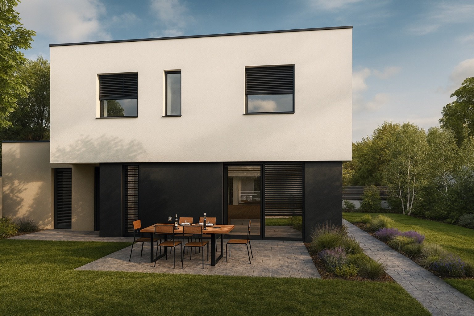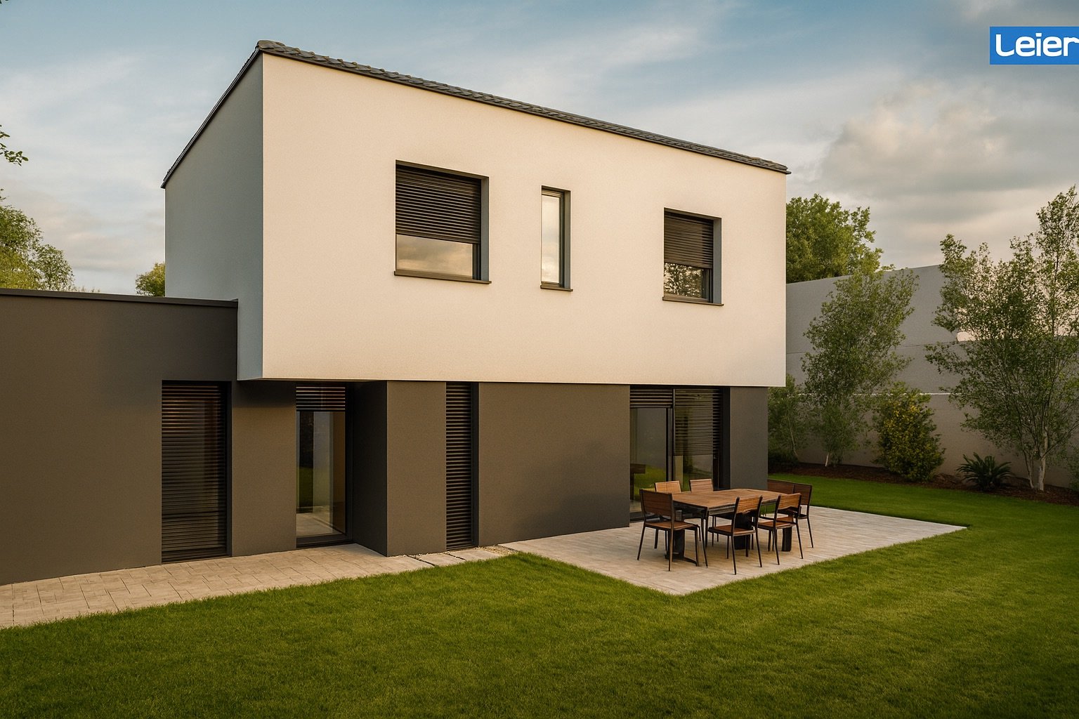 Ez az otthon a Leier kéregfal technológiájával épül, amely egyesíti a gyorsaságot és a tartósságot. A ház falai két, gyárilag előállított, milliméteres pontosságú betonkéregből állnak , amelyeket a helyszínen betonnal öntenek ki. Ez egy masszív, hézagmentes vasbeton szerkezetet hoz létre , amelynek stabilitása akár a 100 évet is meghaladhatja. A technológia előnyei azonnal érezhetők: a falak kiváló hőtároló tömeggel rendelkeznek, így a ház télen lassabban hűl ki, nyáron pedig kellemesen hűvös marad. Emellett kiemelkedő hangszigetelést és magas tűzállóságot biztosít. A gyári előkészítésnek köszönhetően a falak felülete tükörsima, repedésmentes , és az elektromos vezetékeket, dobozokat már a gyártás során elhelyezik bennük.