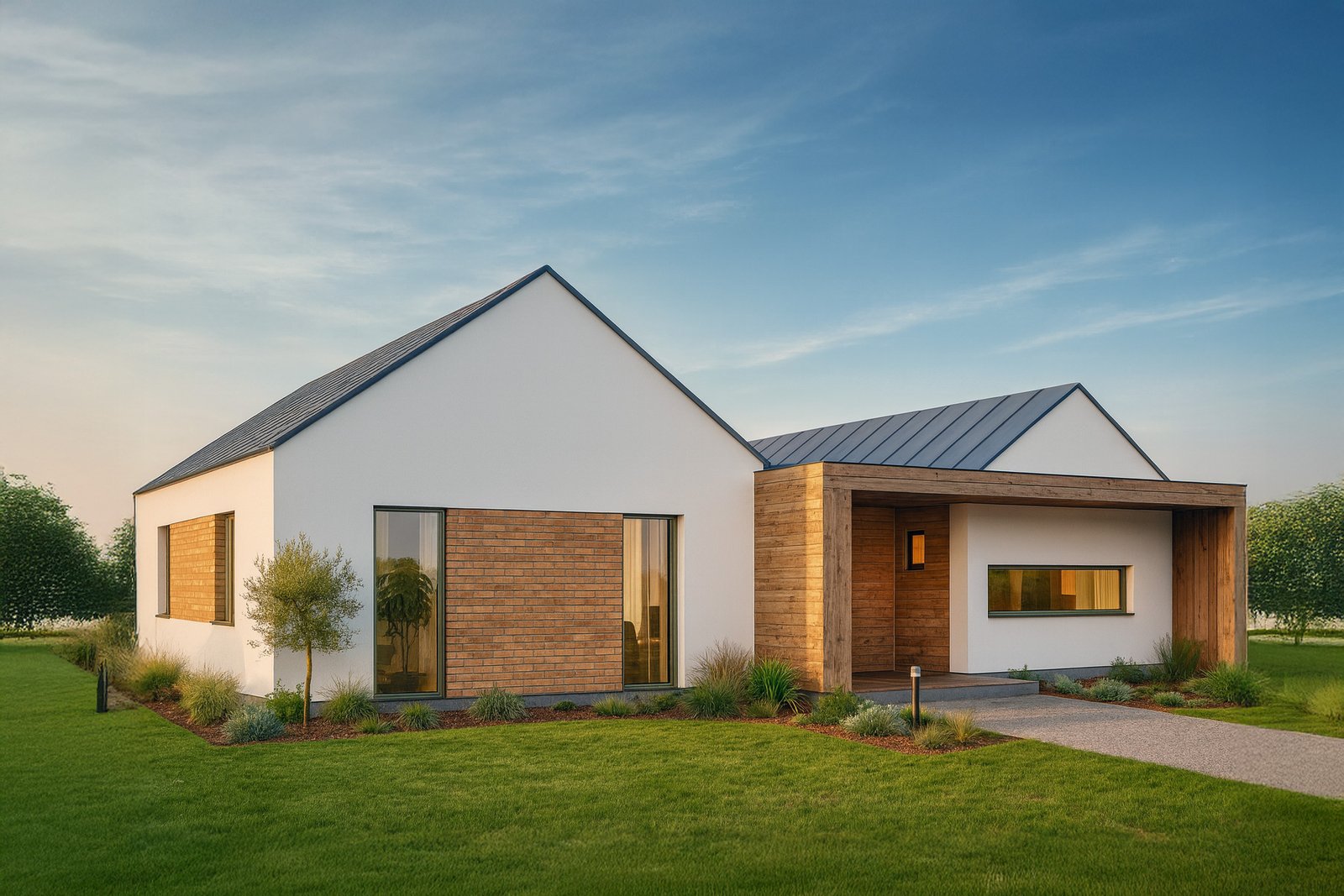 Otthonaink a Magyarországon Hőszigetelt Építési Táblaként (HÉT) engedélyeztetett SIP panel technológiával készülnek. Ez a modern, előregyártott építési mód nemcsak rendkívül gyors kivitelezést tesz lehetővé – a szerkezet akár napok alatt felépülhet –, de kiemelkedő energiahatékonyságot is garantál. A panelek kiváló hőszigetelő képességének és a speciális légzárási technikáknak köszönhetően a fűtési és hűtési költségek akár 50%-kal is alacsonyabbak lehetnek egy hagyományos téglaházhoz képest. Mivel a falszerkezet vékonyabb az azonos hőszigetelést nyújtó téglafalaknál, értékes négyzetméterekkel növekszik a hasznos belső tér.