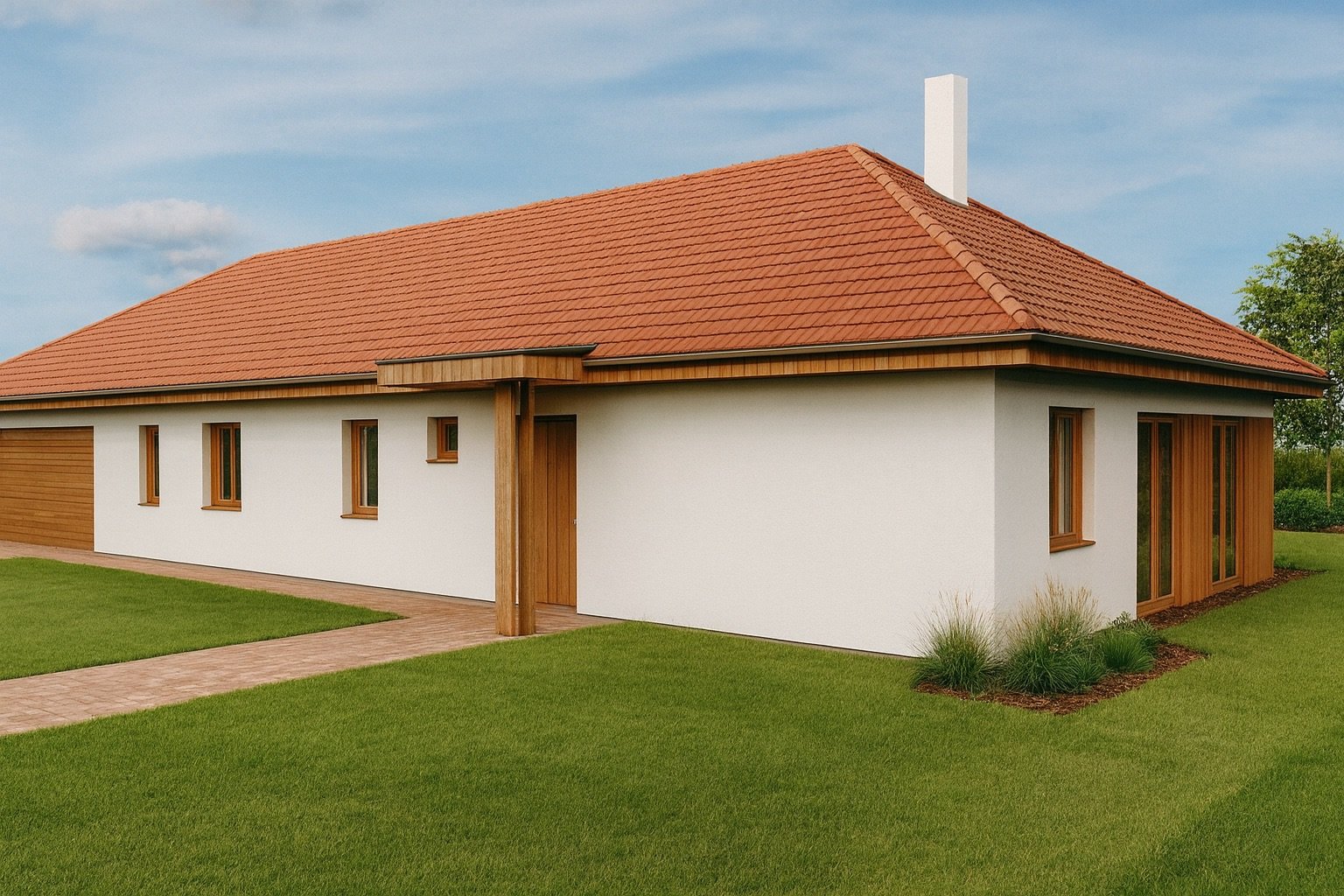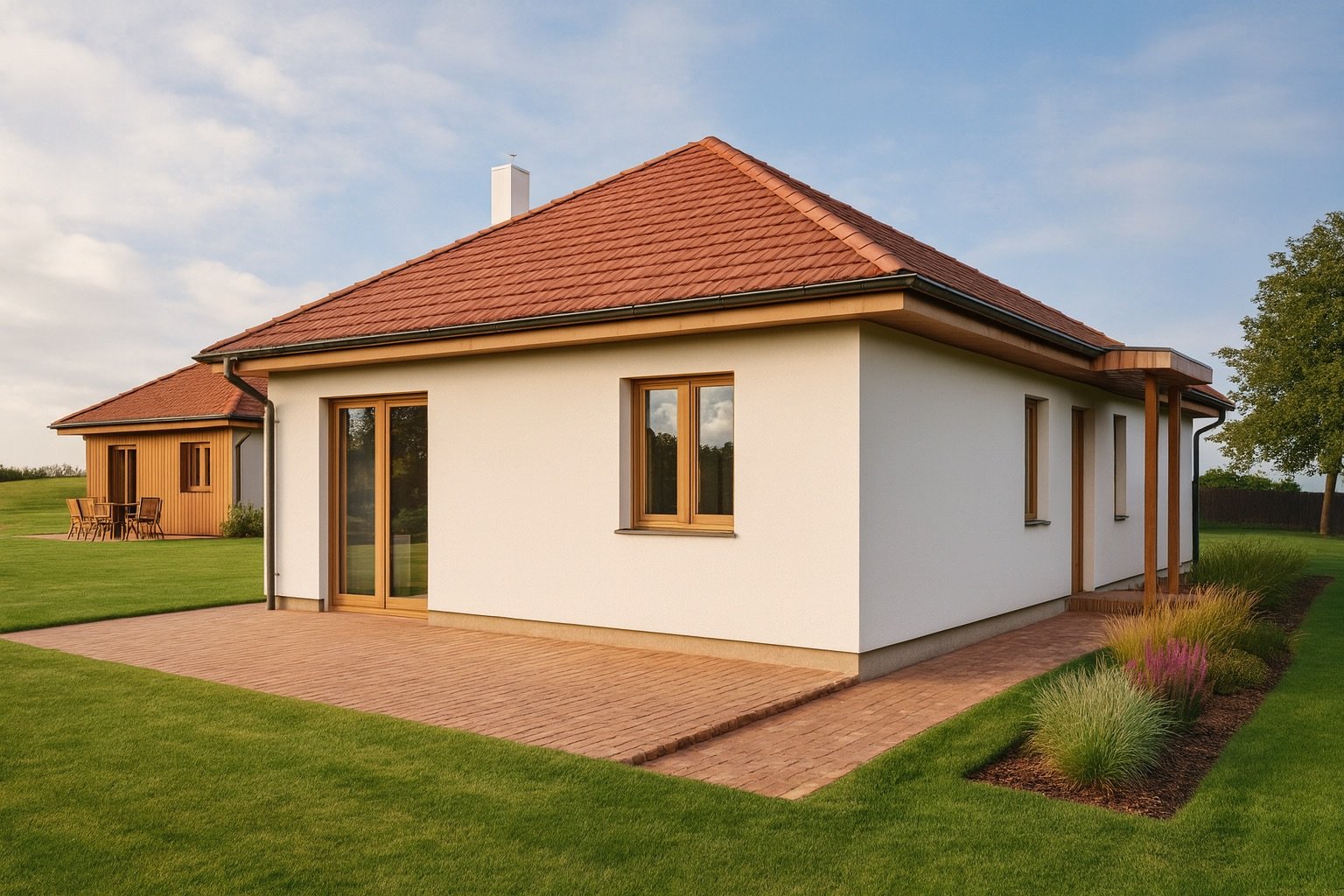 Otthona egy modern és hatékony, helyszíni favázas könnyűszerkezetes technológiával épül fel. Ennek lényege, hogy az épület tartószerkezetét egy előre méretezett, gomba- és rovarkár elleni védelemmel ellátott fa váz adja, amelyet közvetlenül az építkezés helyszínén állítanak össze. Ez a vázrendszer a hagyományos téglaházakéhoz hasonló stabilitást és teherbírást biztosít. A „száraz” építési technológiának köszönhetően a folyamat rendkívül gyors és az időjárástól kevésbé függ, egy szerkezetkész ház akár hetek alatt elkészülhet. A helyszíni szerelés egyik legnagyobb előnye a rugalmasság; mivel csak az alapanyagokat kell a telekre szállítani, a nehezen megközelíthető telkek beépítése sem jelent akadályt. A falakban vastag, ISOVER AKUPLAT üvegszálas hőszigetelés, a födémben pedig 30 cm üvegszálas szigetelés garantálja az alacsony fenntartási költségeket.