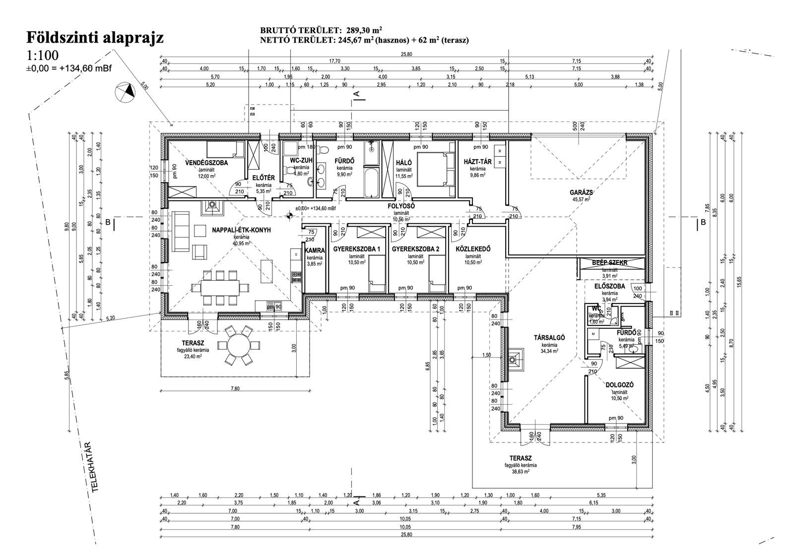 Az Inga 307 alaprajzán minden a praktikumot és a tágas élettereket szolgálja. A főépületben a hatalmas nappali mellett egy kamra és külön háztartási helyiség is helyet kapott, a kényelmet pedig két fürdőszoba és egy külön WC is növeli. A házat körbeölelő, összesen 62 m²-es teraszrendszer páratlan kapcsolatot teremt a kerttel, és kiváló helyszínt biztosít a pihenésre és a családi összejövetelekre. A dupla garázs kényelmes parkolást biztosít, a különálló lakrész pedig saját fürdőszobával, dolgozószobával és teraszkapcsolattal rendelkezik, így nyújtva teljes értékű, szeparált életteret.
